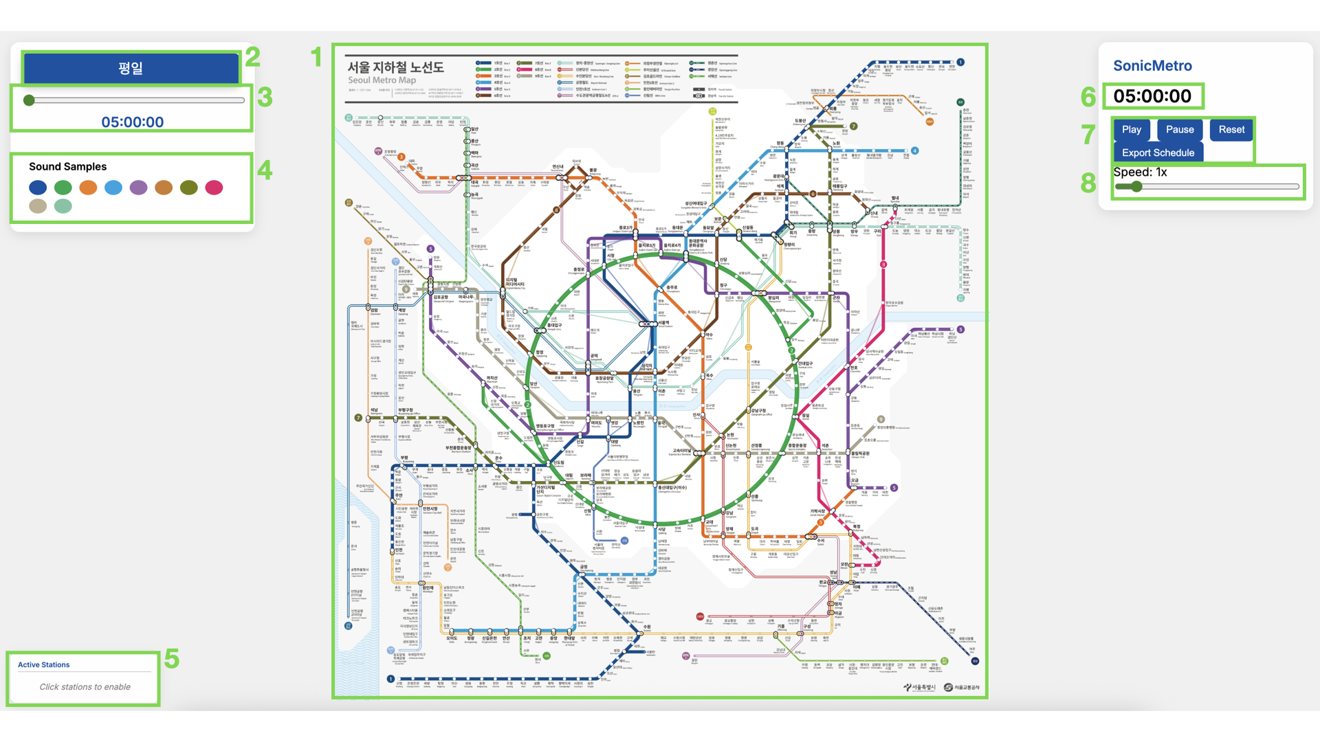 Even today, countless trains on the Seoul metropolitan subway carry people to their destinations along the tracks. And they repeat the cycle of stopping at designated stations at designated times (probably…) according to the timetable and departing again. There are currently 24 such lines where trains run in the Seoul metropolitan area, and hundreds of trains move on them in their own orderly patterns. However, there are too many trains and stations to see that pattern at a glance, and the subway map is too complex to grasp it all. So, what if we could listen to this pattern instead of just seeing it?